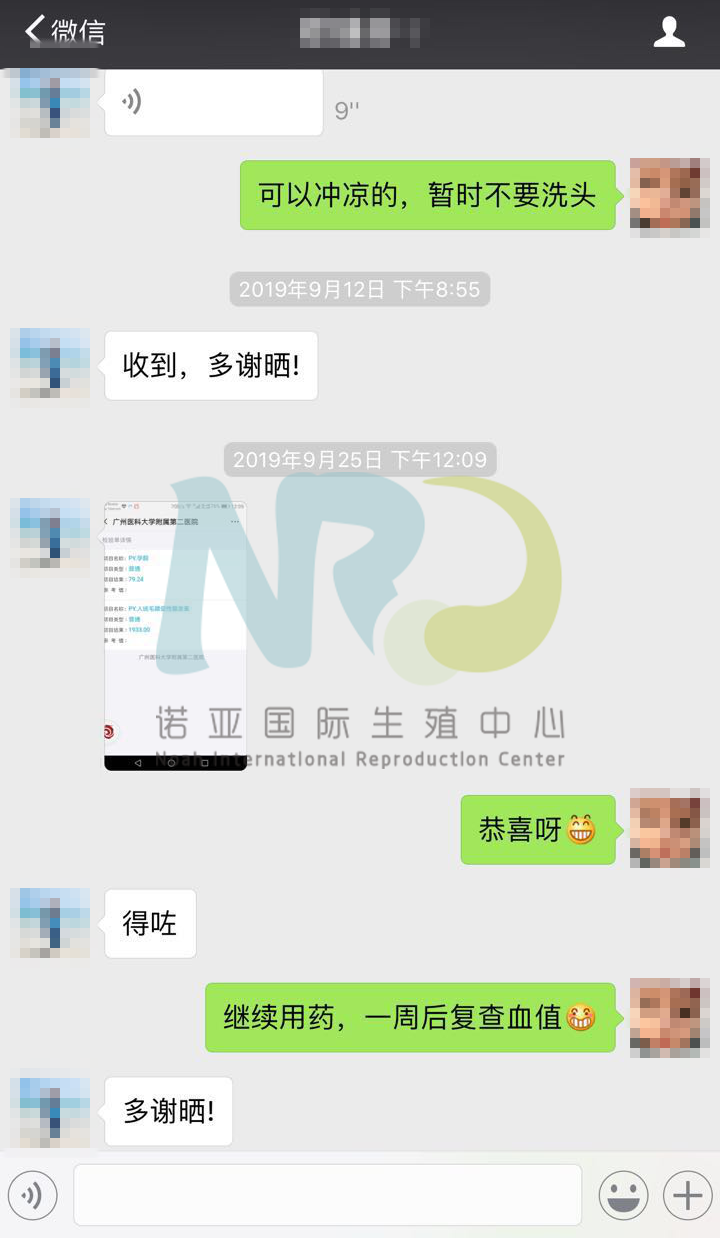第三方志愿者当天去了26个,通过实验室培养形成了9个囊胚。最后选择了一个男胚移植,移植后12天,郑女士到广州医科大学附属第二医院检测,结果显示Hcg为1933,证明成功怀上了。最后,恭喜郑女士成功圆梦,希望男宝宝早日出生~
